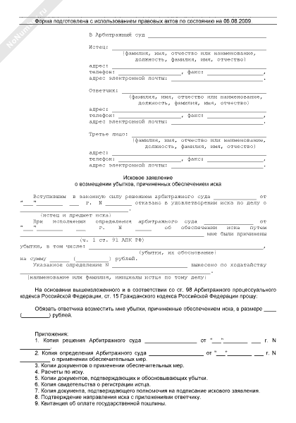- 649Исковое заявление в арбитражный суд о возмещении убытков, причиненных обеспечением иска