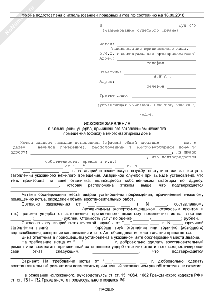 - 133Исковое заявление в суд общей юрисдикции о возмещении ущерба, причиненного затоплением нежилого помещения (офиса) в многоквартирном доме