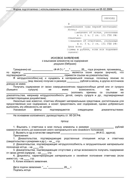 - 132Исковое заявление о взыскании алиментов на содержание дедушки (бабушки)