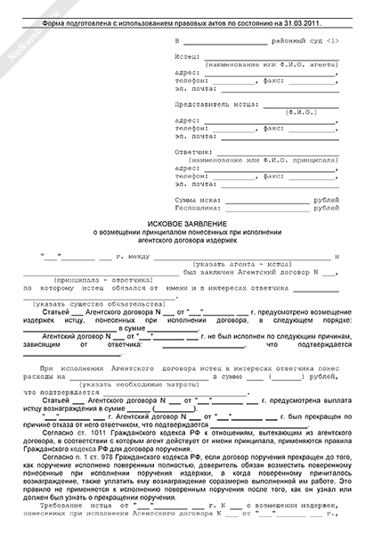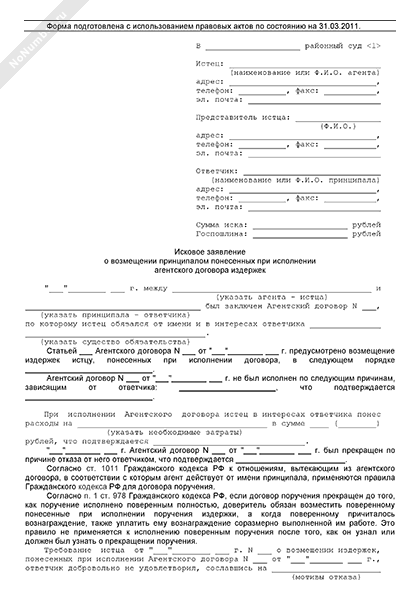 - 1750Исковое заявление агента в суд общей юрисдикции о возмещении принципалом понесенных при исполнении агентского договора издержек