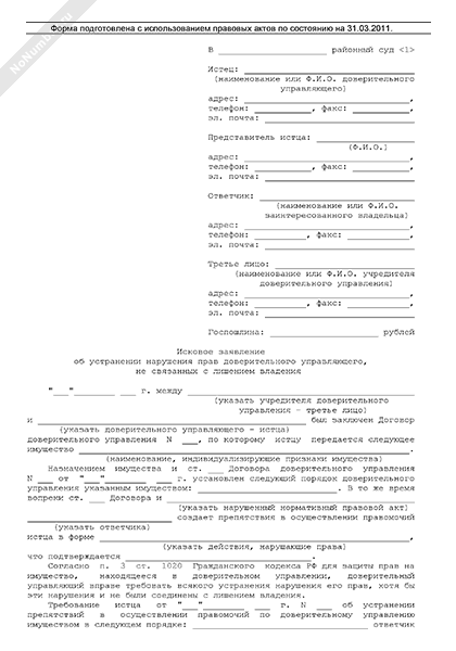 - 1757Исковое заявление доверительного управляющего в суд общей юрисдикции об устранении нарушения его прав, не связанных с лишением владения