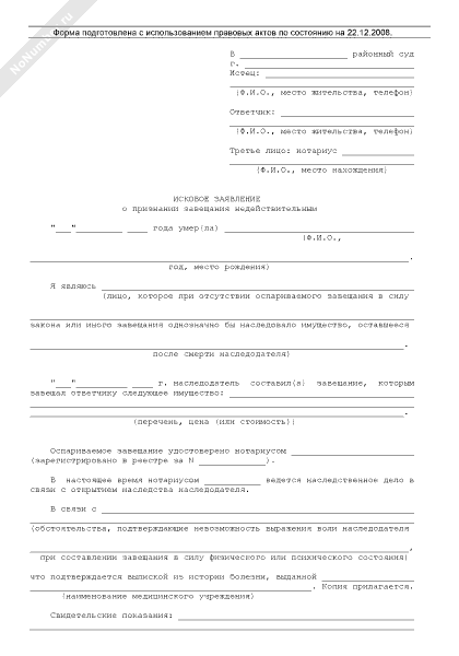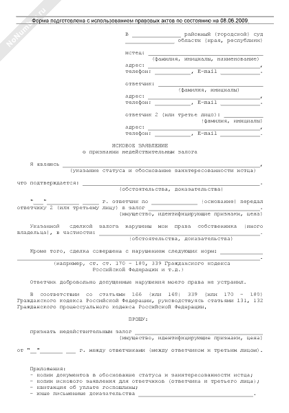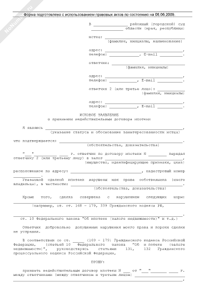 Исковое заявление о признании недействительным договора ипотеки (рекомендуемый образец заполнения)