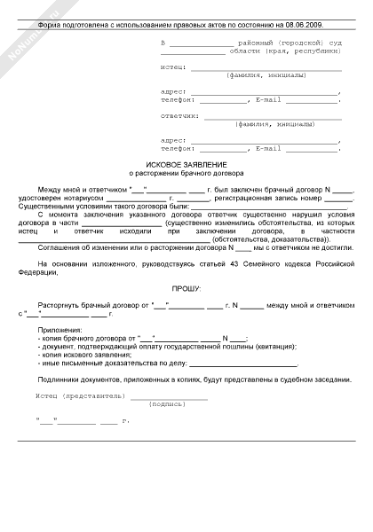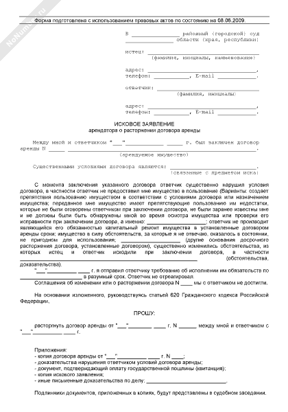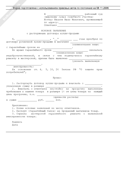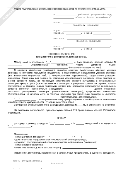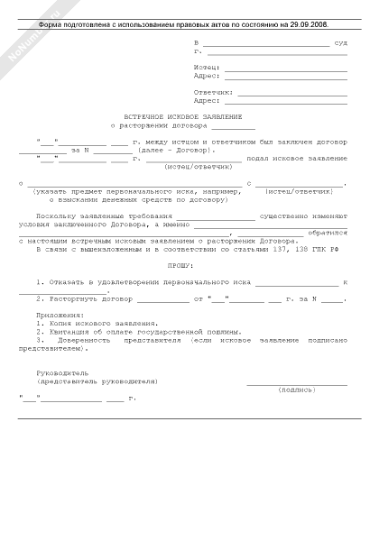 Исковое заявление о расторжении договора купли-продажи недвижимости (рекомендуемый образец заполнения)