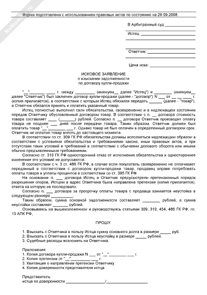 Исковое заявление о взыскании задолженности по договору купли-продажи