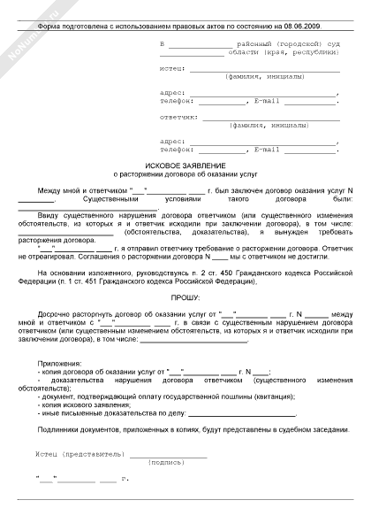Исковое заявление о расторжении договора об оказании услуг
