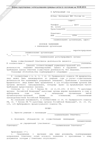 Исковое заявление о ликвидации организации