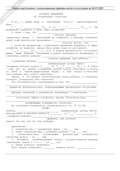 Исковое заявление об оспаривании отцовства