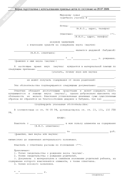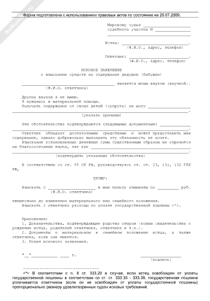 Исковое заявление о взыскании средств на содержание дедушки (бабушки)