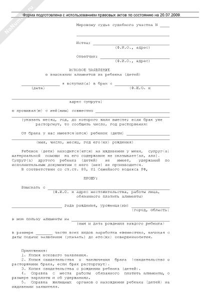 Исковое заявление о взыскании алиментов на ребенка (детей)