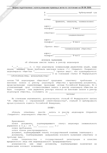 Исковое заявление в арбитражный суд о выплате обещанной награды