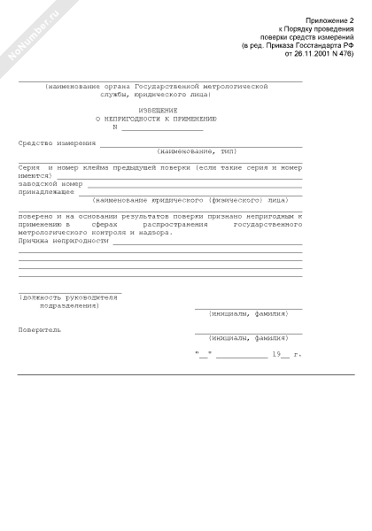 Извещение о непригодности к применению средств измерений (рекомендуемый образец заполнения)