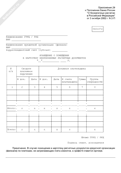 Извещение о помещении в картотеку неоплаченных расчетных документов. Форма № 0401072 (рекомендуемый образец заполнения)