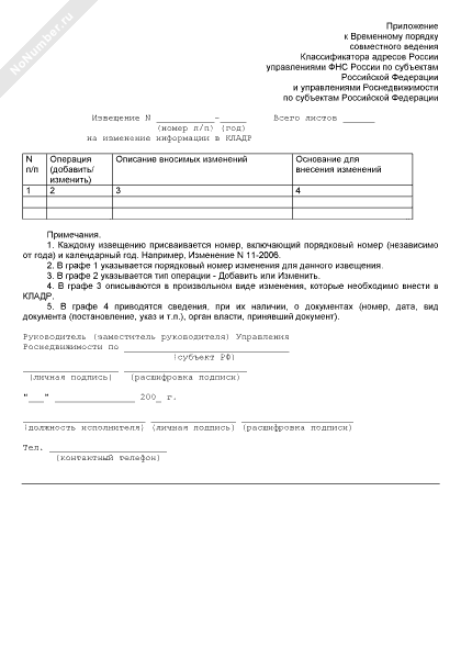 Извещение на изменение информации в Классификаторе адресов России