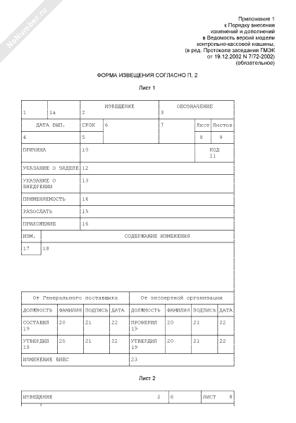 Извещение о внесении изменений и дополнений в ведомость версий модели контрольно-кассовой машины (обязательная форма)