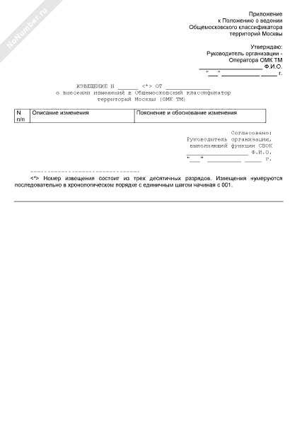 Извещение о внесении изменений в Общемосковский классификатор территорий Москвы (ОМК ТМ)