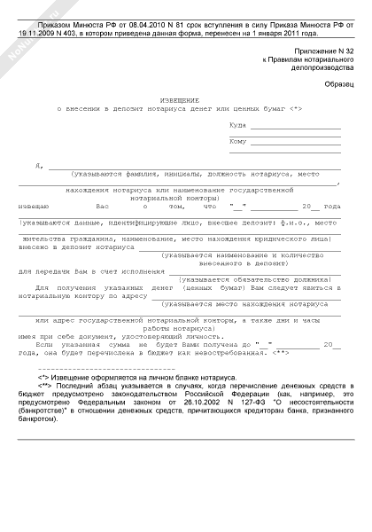 - Источник– Приказ Минюста РФ от 19.11.2009 № 403 (редакция от 08.04.2010 № 81)