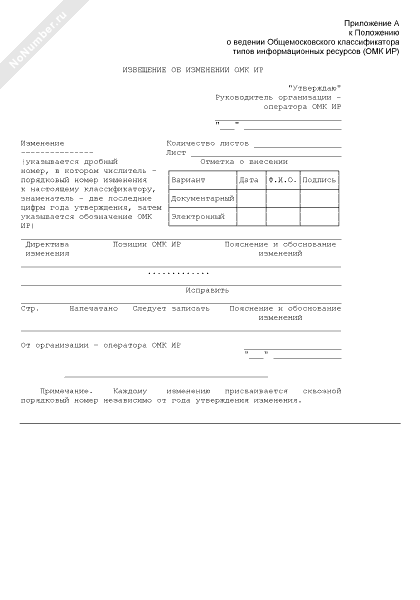 Извещение об изменении Общемосковского классификатора типов информационных ресурсов (ОМК ИР)