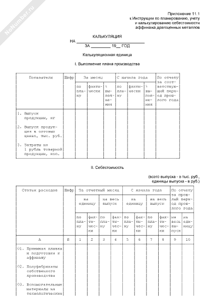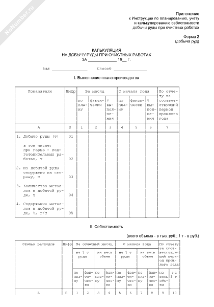 Калькуляция на добычу руды при очистных работах. Форма № 2 (добыча руд)