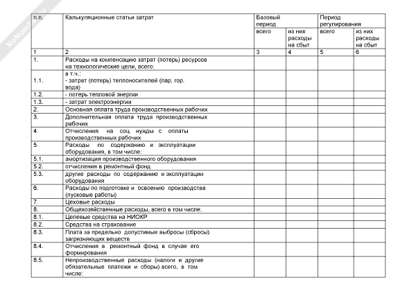 Калькуляция расходов по передаче тепловой энергии (таблица № П1.19.2)
