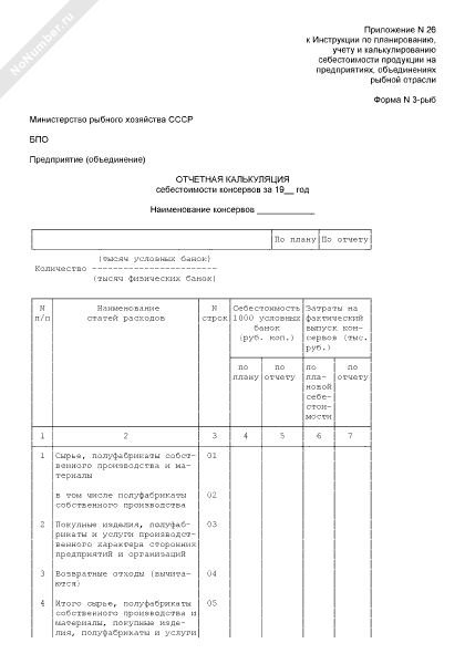 Отчетная калькуляция себестоимости консервов. Форма № 3-рыб