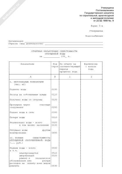 Отчетная калькуляция себестоимости отпущенной воды. Форма № 6-в