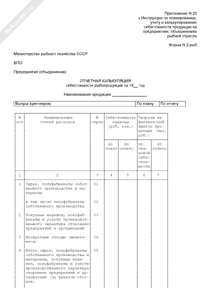 Отчетная калькуляция себестоимости рыбопродукции. Форма № 2-рыб