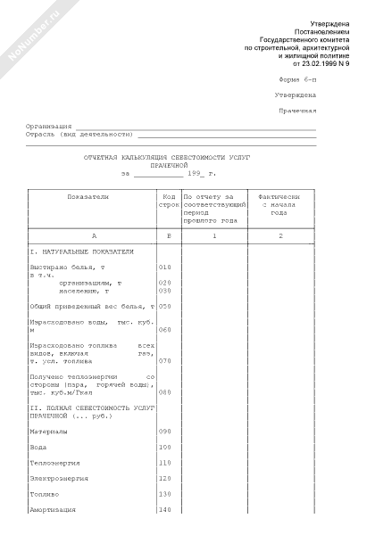 Отчетная калькуляция себестоимости услуг прачечной. Форма № 6-п