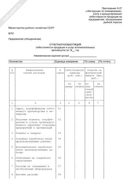 Отчетная калькуляция себестоимости продукции и услуг вспомогательных производств на предприятиях, объединениях рыбной отрасли (рекомендуемый образец заполнения)