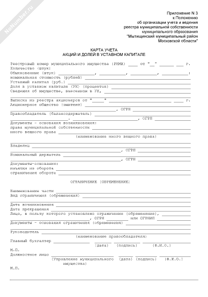 - 186Карта учета акций и долей в уставном капитале хозяйственных обществ, находящихся в собственности муниципального образования «Мытищинский муниципальный район Московской области»