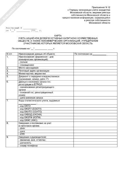 - 184Карта учета акций или долей в уставных капиталах хозяйственных обществ, а также некоммерческих организаций, учредителем (участником) которых является Московская область