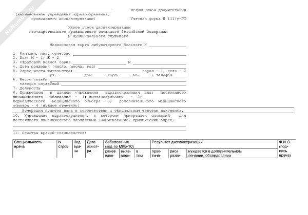 - 196Карта учета диспансеризации государственного гражданского служащего Российской Федерации и муниципального служащего. Учетная форма № 131/у-ГС