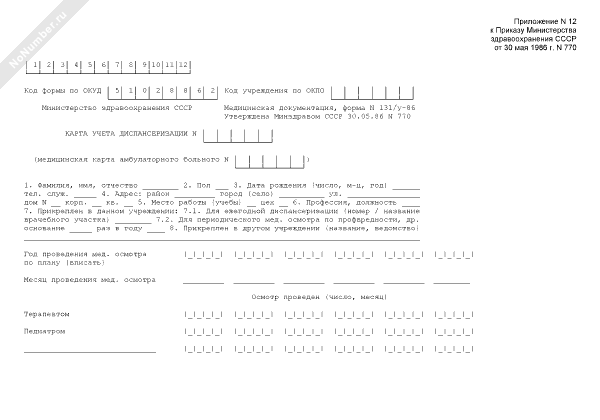 - 195Карта учета диспансеризации. Форма № 131/У-86