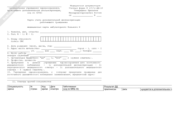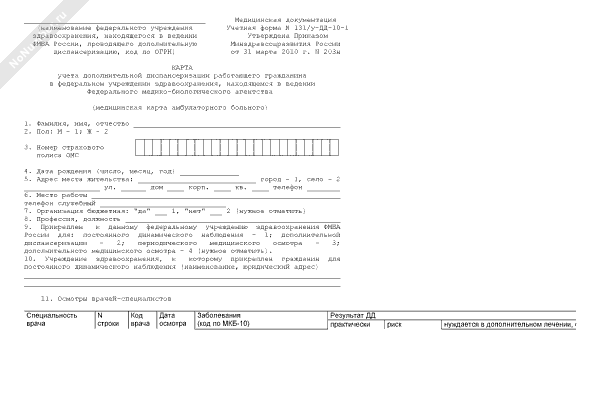 - 198Карта учета дополнительной диспансеризации работающего гражданина. Учетная форма № 131/у-ДД-10