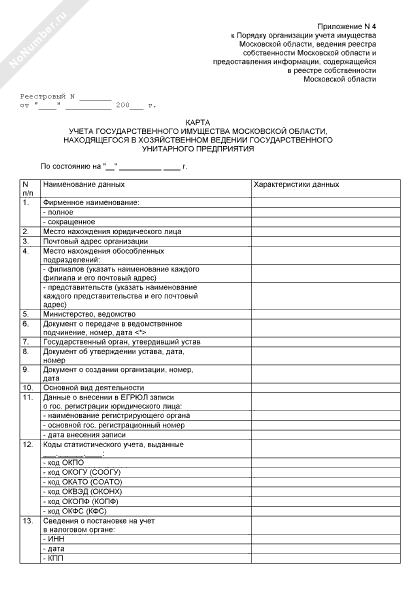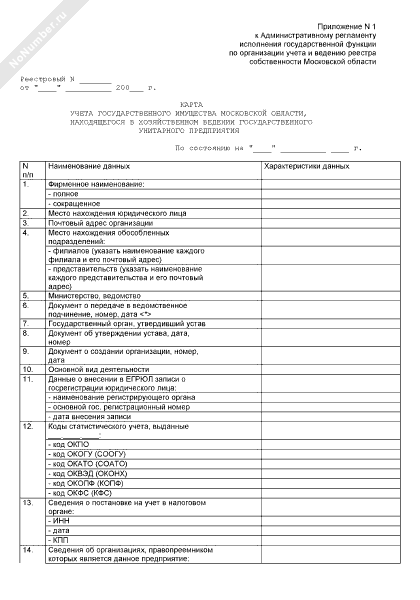 - 188Карта учета государственного имущества Московской области, находящегося в хозяйственном ведении государственного унитарного предприятия