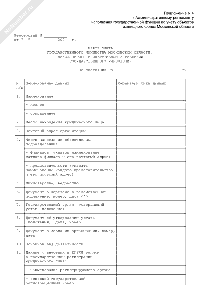- 192Карта учета государственного имущества Московской области, находящегося в оперативном управлении государственного учреждения