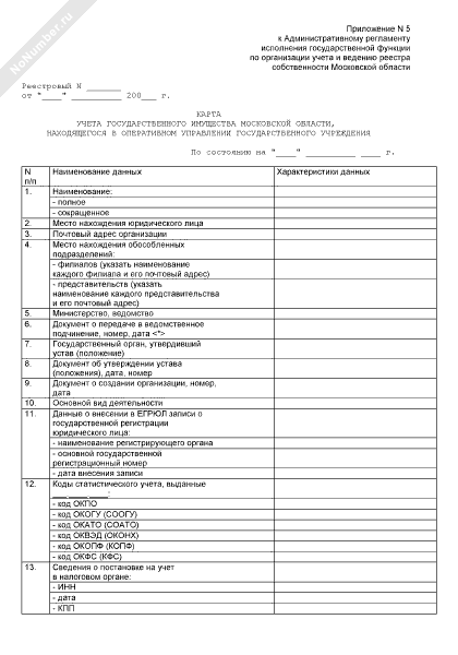 - 190Карта учета государственного имущества Московской области, находящегося в оперативном управлении государственного учреждения