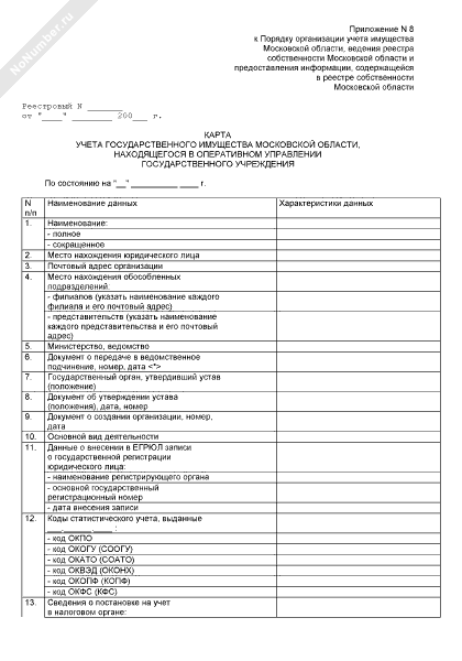 - 191Карта учета государственного имущества Московской области, находящегося в оперативном управлении государственного учреждения