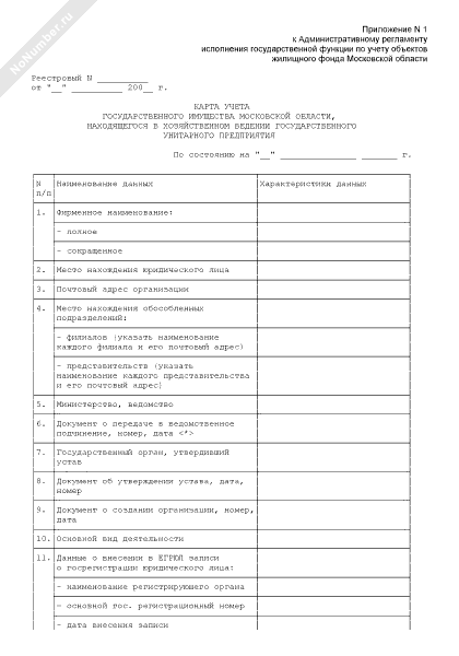 - 189Карта учета государственного имущества Московской области, находящегося в хозяйственном ведении государственного унитарного предприятия