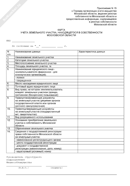 - 200Карта учета земельного участка, находящегося в собственности Московской области
