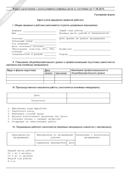 - 204Карта учета карьерного развития рабочего