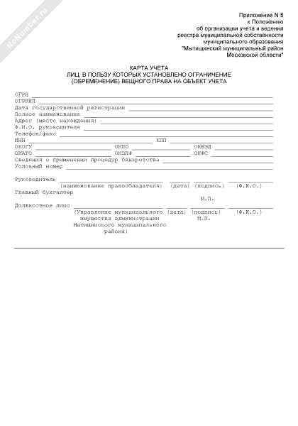 - 205Карта учета лиц, в пользу которых установлено ограничение (обременение) вещного права на объект учета, находящийся в собственности муниципального образования «Мытищинский муниципальный район Московской области»