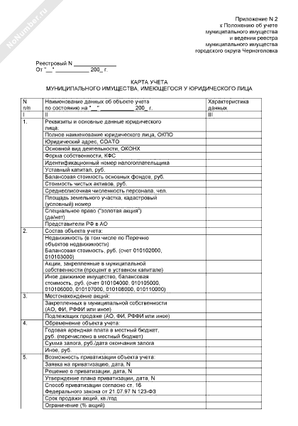 - 206Карта учета муниципального имущества городского округа Черноголовка Московской области, имеющегося у юридического лица
