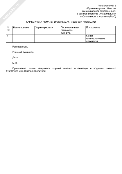 - 208Карта учета нематериальных активов организации для регистрации в реестре объектов муниципальной собственности г. Фрязино Московской области