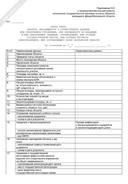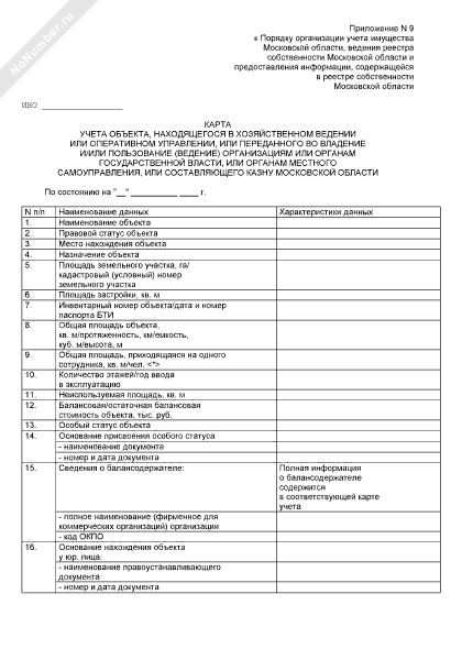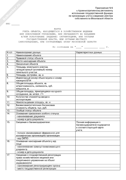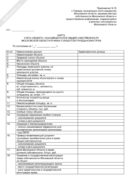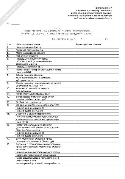 - 215Карта учета объекта, находящегося в общей собственности московской области и иных субъектов гражданских прав