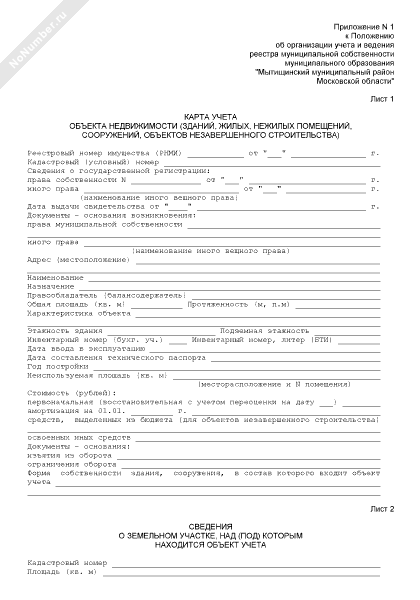 - 211Карта учета объекта недвижимости (зданий, жилых, нежилых помещений, сооружений, объектов незавершенного строительства), находящегося в собственности муниципального образования «Мытищинский муниципальный район Московской области»