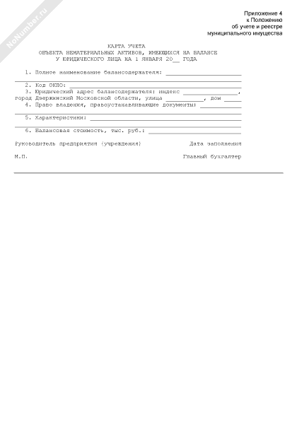 - 213Карта учета объекта нематериальных активов, имеющихся на балансе у юридического лица в г. Дзержинский Московской области
