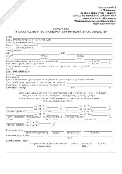 - 218Карта учета организации, имеющей право пользования муниципальной собственностью (для муниципальных предприятий и иных организаций), для регистрации в реестре объектов муниципальной собственности г. Фрязино Московской области