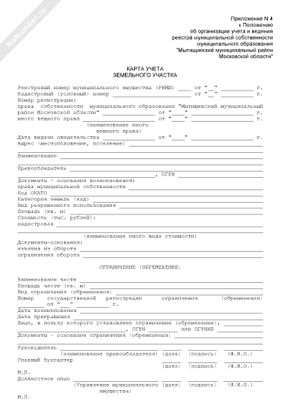 - 202Карта учета земельного участка, находящегося в собственности муниципального образования «Мытищинский муниципальный район Московской области»