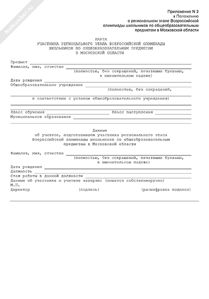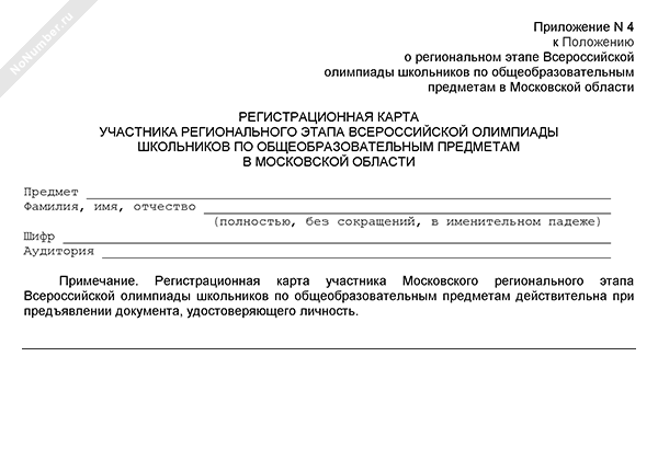 Карта участника регионального этапа Всероссийской олимпиады школьников по общеобразовательным предметам в Московской области