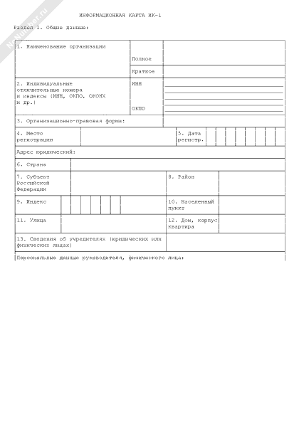 Информационная карта ИК-1 о должнике-организации и имуществе должника (гражданина или организации)